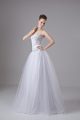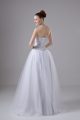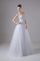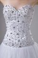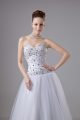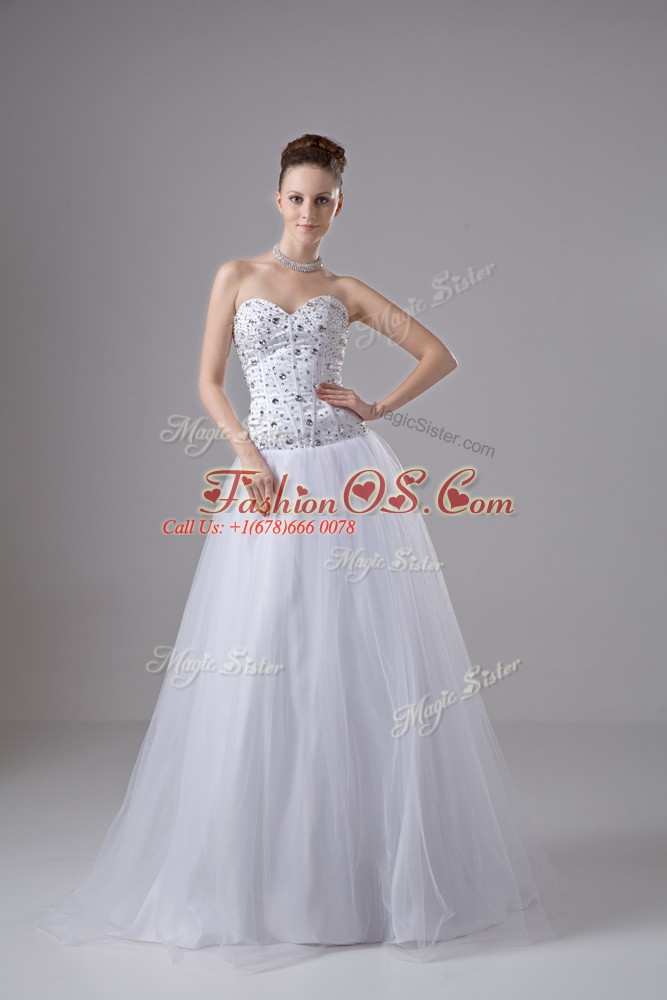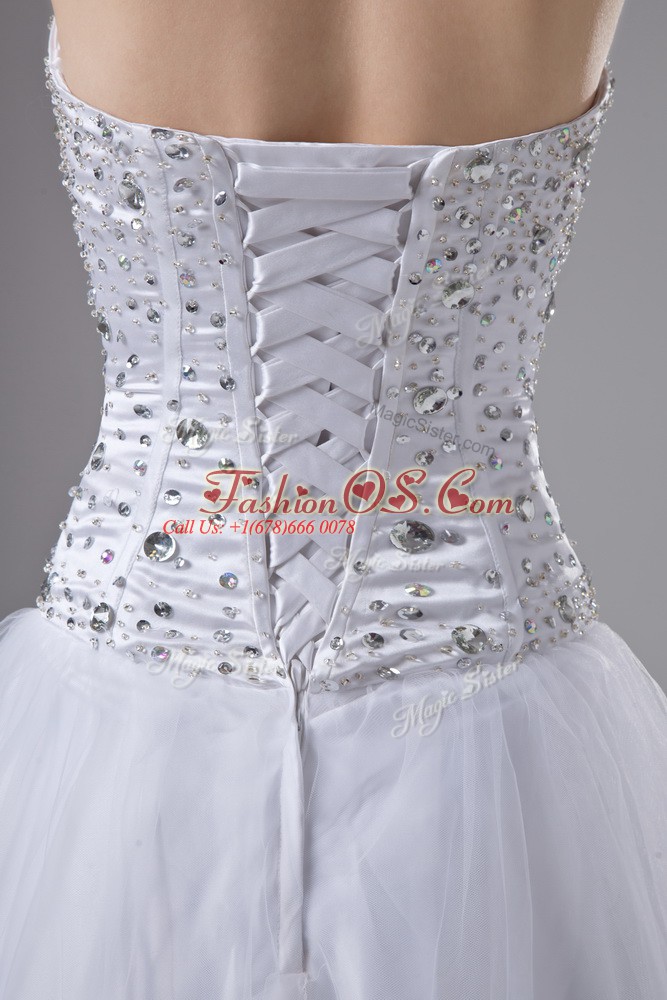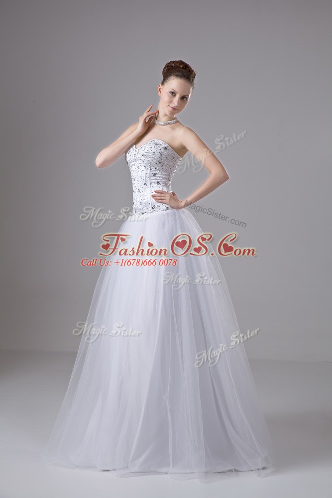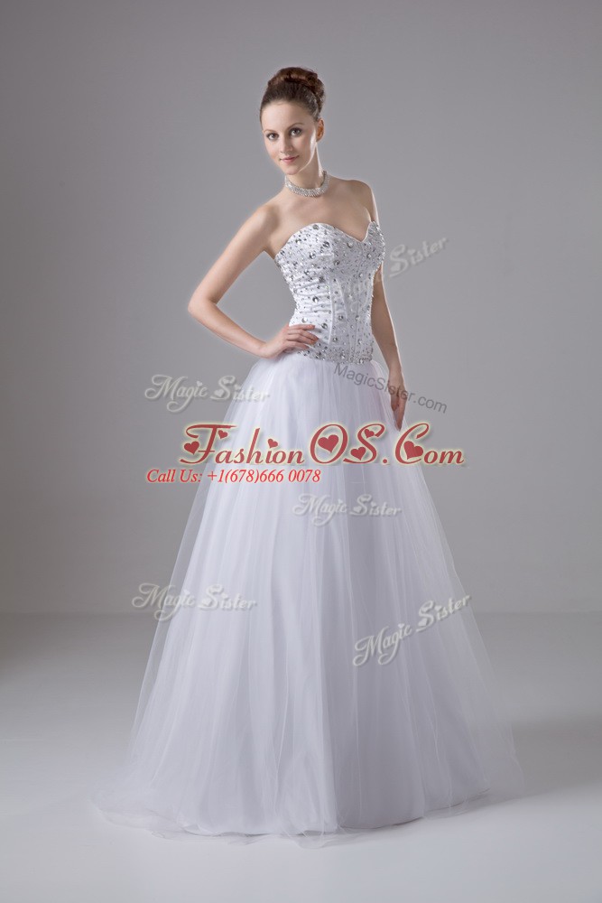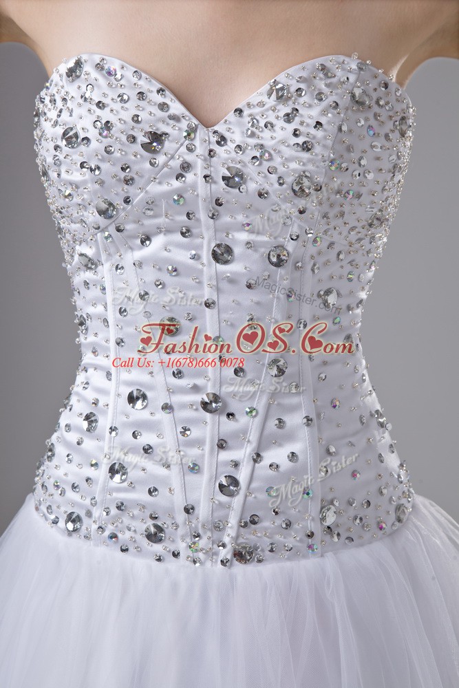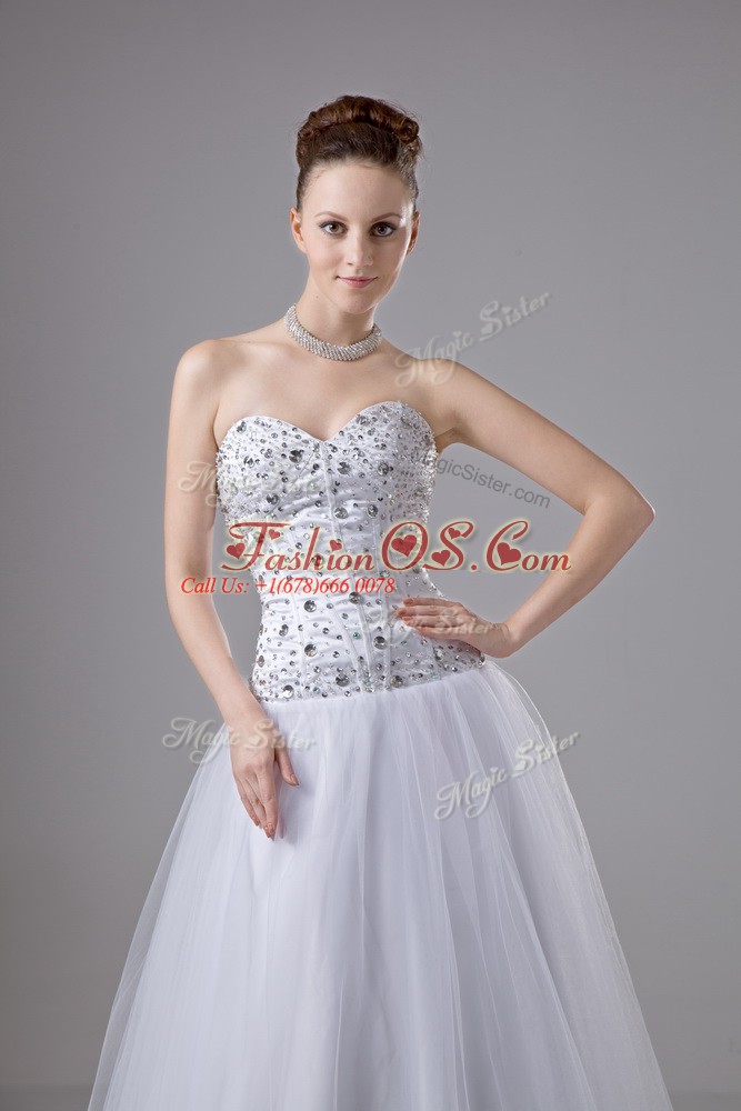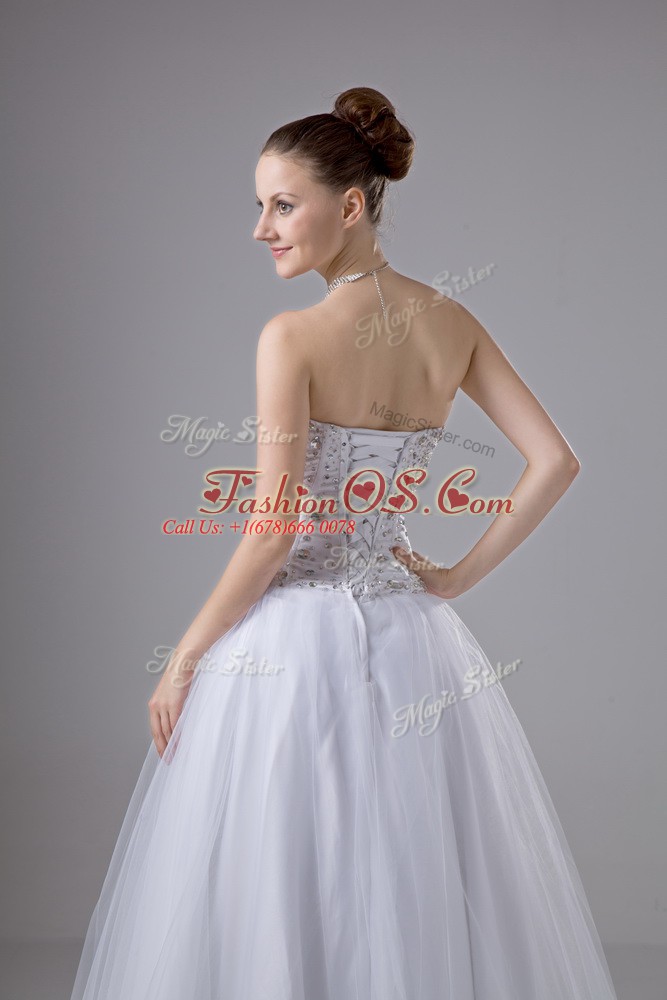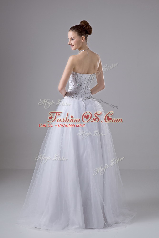 Floor Length Lace Up Bridal Gown White for Wedding Party with Beading