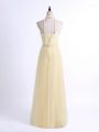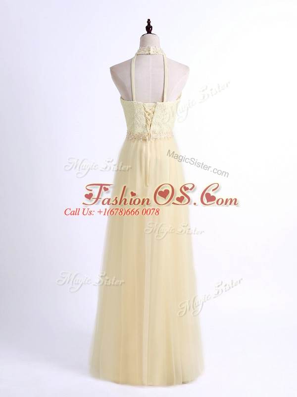 Floor Length Lace Up Bridesmaid Dress Light Yellow for Prom and Party and Wedding Party with Lace and Appliques