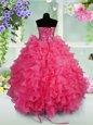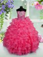 Home >  Special Occasion Dresses >  New Style Little Girl Pageant Dresses > Floor Length Lace Up Child Pageant Dress Hot Pink and In for Party and Wedding Party with Ruffled Layers and Sequins