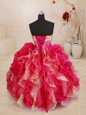 Home >  Special Occasion Dresses >  Mini Quinceanera Dresses > Floor Length Lace Up Flower Girl Dresses Red and In for Quinceanera and Wedding Party with Beading and Ruffles