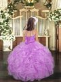Floor Length Lace Up Little Girl Pageant Dress Lavender for Party and Wedding Party with Beading and Ruffles