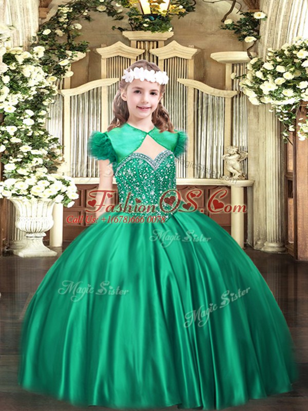 Home >  Special Occasion Dresses >  Pretty Little Girl Pageant Dresses > Floor Length Lace Up Little Girl Pageant Dress Turquoise for Party and Quinceanera with Beading