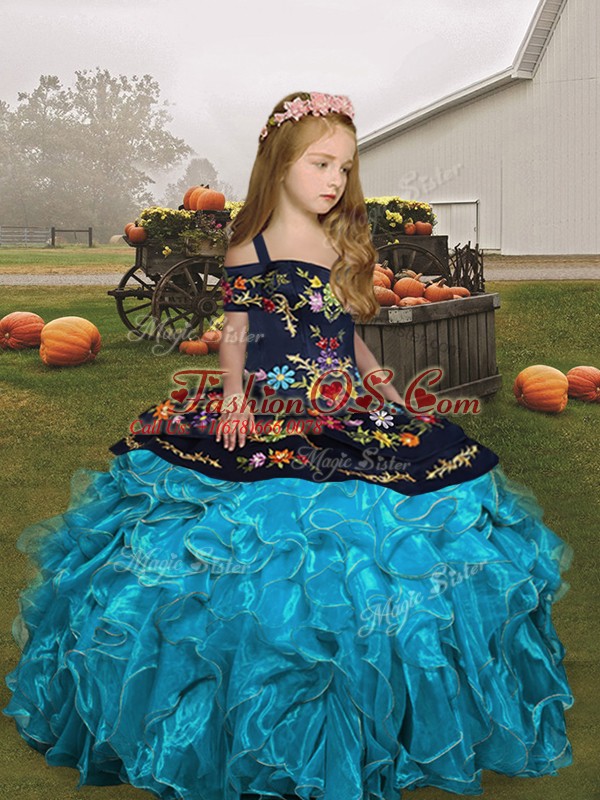 Home >  Special Occasion Dresses >  2018 Little Girl Pageant Dresses > Floor Length Lace Up Little Girls Pageant Gowns Aqua Blue for Party and Wedding Party with Embroidery and Ruffles