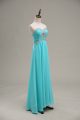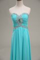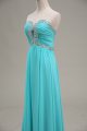 Floor Length Lace Up Prom Gown Aqua Blue for Prom and Military Ball with Beading and Ruching
