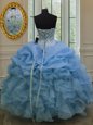 Floor Length Lace Up Quince Ball Gowns Blue and In for Military Ball and Sweet 16 and Quinceanera with Beading and Pick Ups