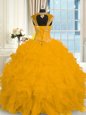 Home >  Quinceanera Dresses >  Fast Delivery Quinceanera Dresses > Floor Length Lace Up Quince Ball Gowns Gold and In for Military Ball and Sweet 16 and Quinceanera with Beading and Ruffles