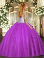 Floor Length Lace Up Quinceanera Dress Eggplant Purple for Sweet 16 and Quinceanera with Beading
