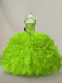 Floor Length Lace Up Quinceanera Dress Green for Sweet 16 and Quinceanera with Ruffles and Sequins