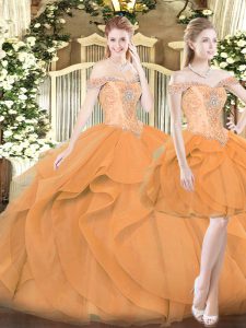 Home >  Quinceanera Dresses >  Detachable Quinceanera Skirts > Floor Length Lace Up Quinceanera Dress Orange Red for Military Ball and Sweet 16 and Quinceanera with Ruffles