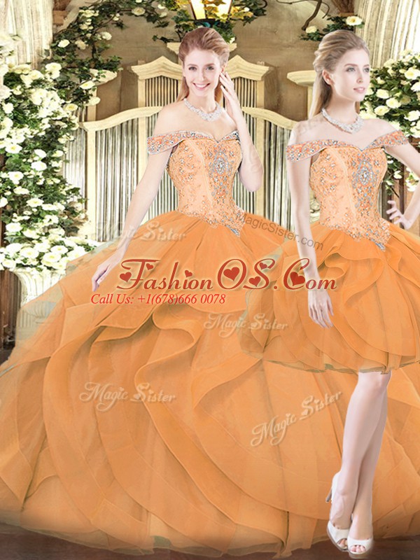 Floor Length Lace Up Quinceanera Dress Orange Red for Military Ball and Sweet 16 and Quinceanera with Ruffles