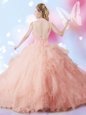 Warning: number_format() expects parameter 2 to be long, string given in /home/fashonos/domains/fashionos.com/public_html/includes/classes/currencies.php on line 52 Floor Length Lace Up Quinceanera Dress Peach and In for Military Ball and Sweet 16 and Quinceanera with Beading and Ruffles-
