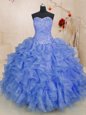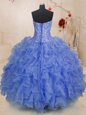 Floor Length Lace Up Quinceanera Dresses Blue and In for Military Ball and Sweet 16 and Quinceanera with Beading and Ruffles