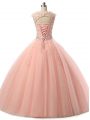 Floor Length Lace Up Quinceanera Dresses Blue for Military Ball and Sweet 16 and Quinceanera with Beading and Lace