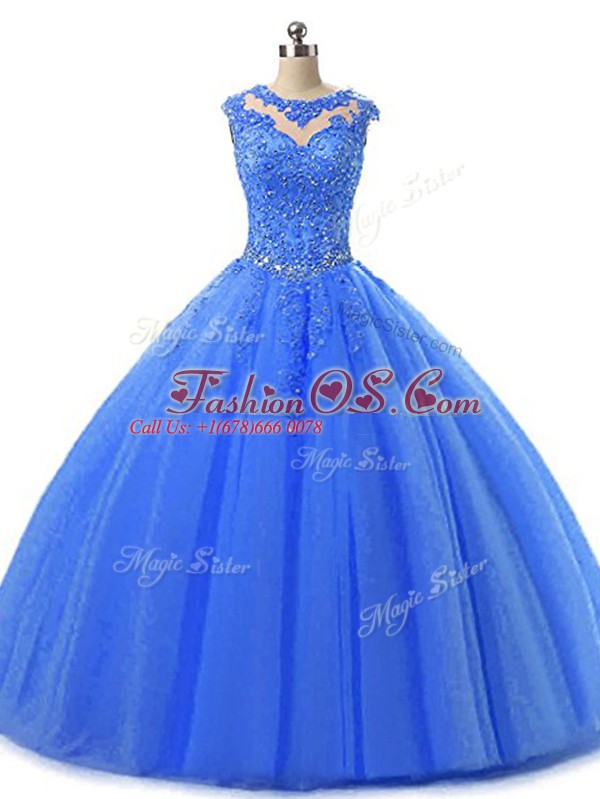 Home >  Quinceanera Dresses >  Fast Delivery Quinceanera Dresses > Floor Length Lace Up Quinceanera Dresses Blue for Military Ball and Sweet 16 and Quinceanera with Beading and Lace
