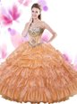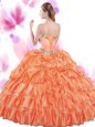 Home >  Quinceanera Dresses >  Popular Quinceanera Dresses > Floor Length Lace Up Quinceanera Dresses Watermelon Red and In for Military Ball and Sweet 16 and Quinceanera with Beading and Ruffled Layers and Pick Ups