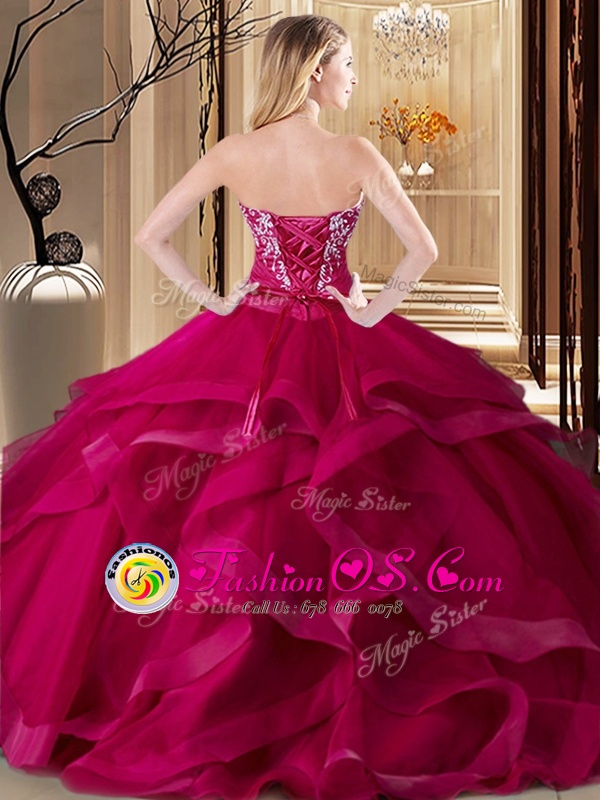 Floor Length Lace Up Quinceanera Gown for Military Ball and Sweet 16 and Quinceanera with Embroidery and Ruffles