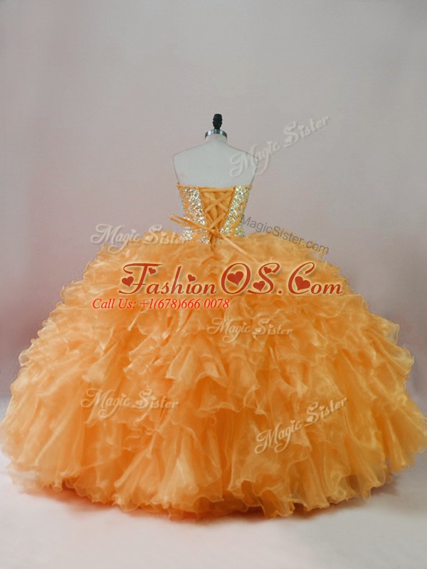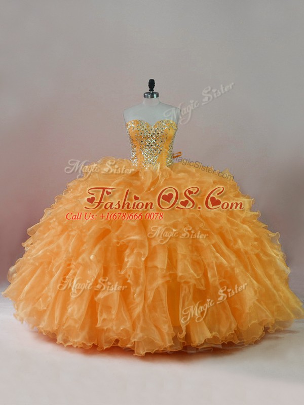 Floor Length Lace Up Quinceanera Gown Orange for Sweet 16 and Quinceanera with Beading and Ruffles