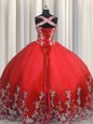 Home >  Quinceanera Dresses >  In Stock Quinceanera Dresses > Floor Length Lace Up Sweet 16 Dress Coral Red and In for Military Ball and Sweet 16 and Quinceanera with Beading and Appliques