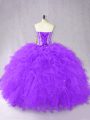 Floor Length Lace Up Sweet 16 Dresses Purple for Sweet 16 and Quinceanera with Beading and Ruffles