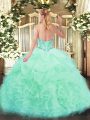 Floor Length Lace Up Sweet 16 Quinceanera Dress Apple Green for Military Ball and Sweet 16 and Quinceanera with Beading and Ruffles and Pick Ups