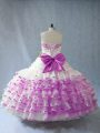 Floor Length Lace Up Sweet 16 Quinceanera Dress Lilac for Sweet 16 and Quinceanera with Embroidery and Ruffled Layers