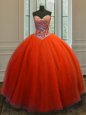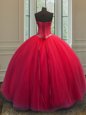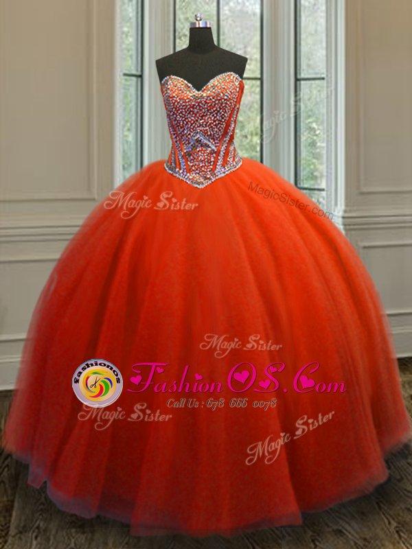 Floor Length Lace Up Vestidos de Quinceanera Red and In for Military Ball and Sweet 16 and Quinceanera with Beading