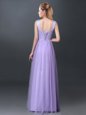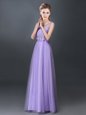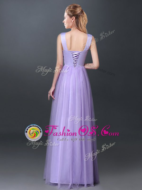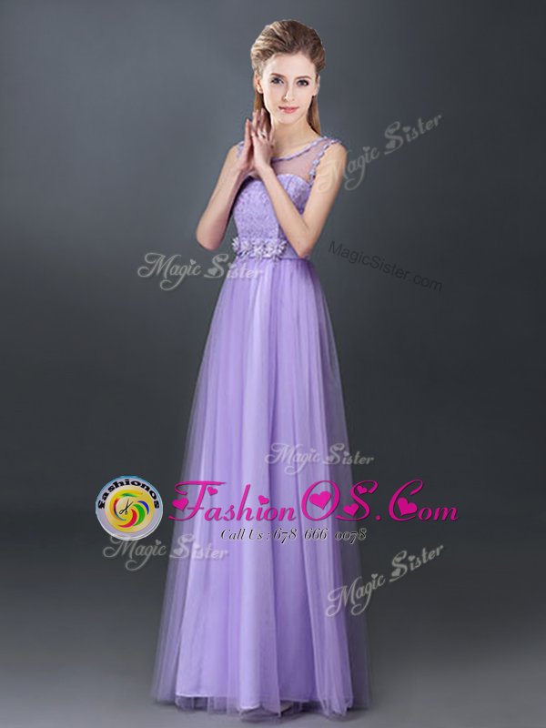 Floor Length Lavender Bridesmaid Dress Scoop Sleeveless Lace Up