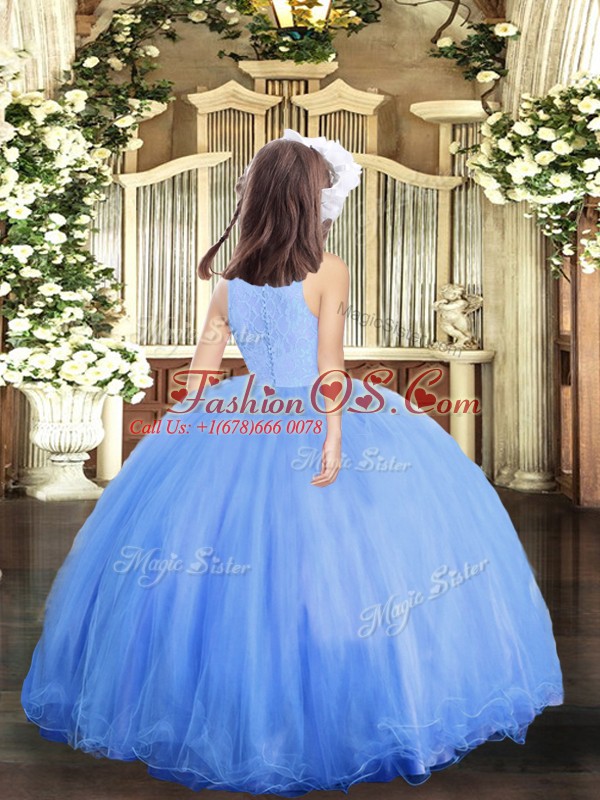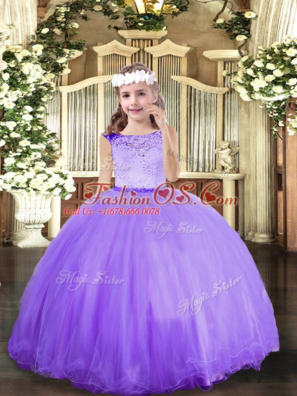 Floor Length Lavender Pageant Gowns Tulle Sleeveless Lace