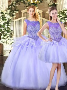 Floor Length Lavender Sweet 16 Dresses Organza Sleeveless Beading