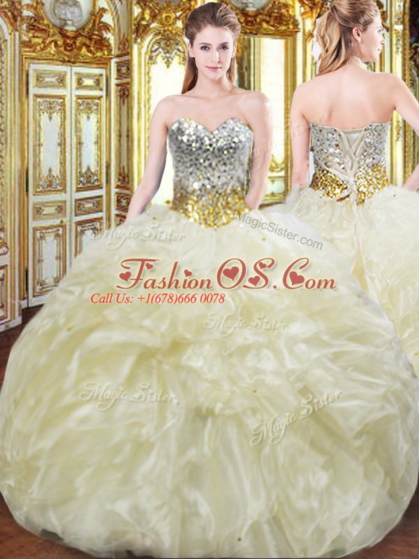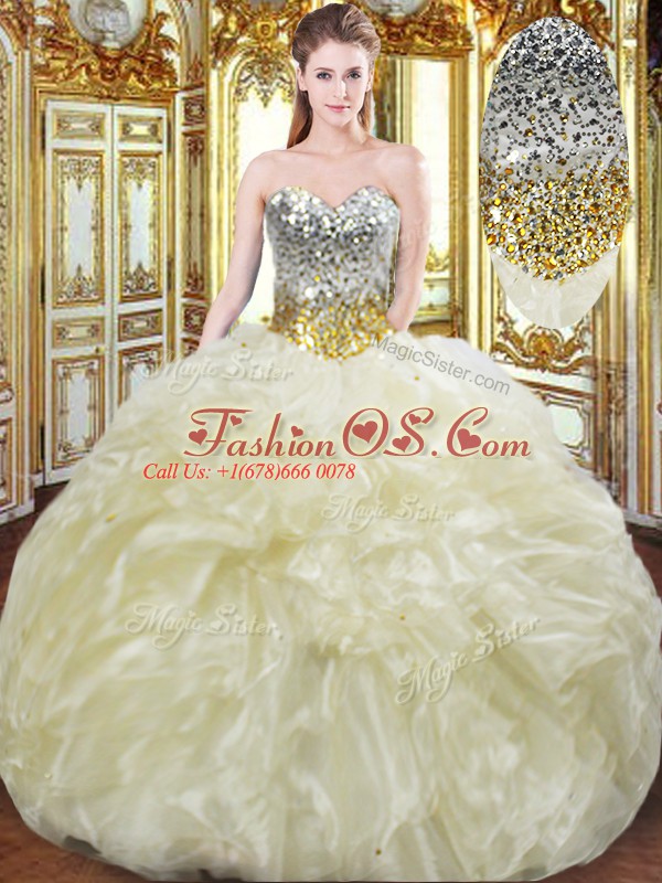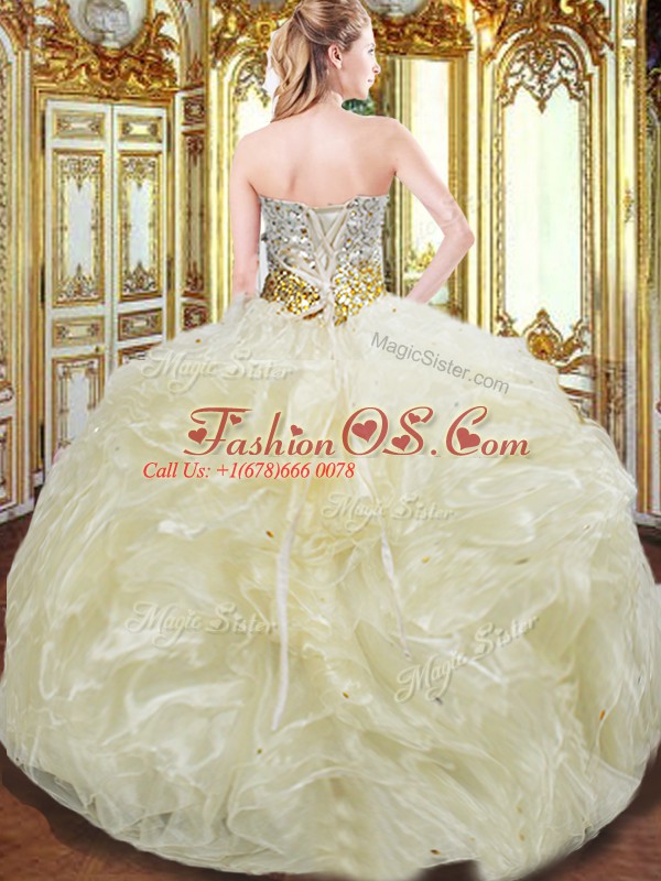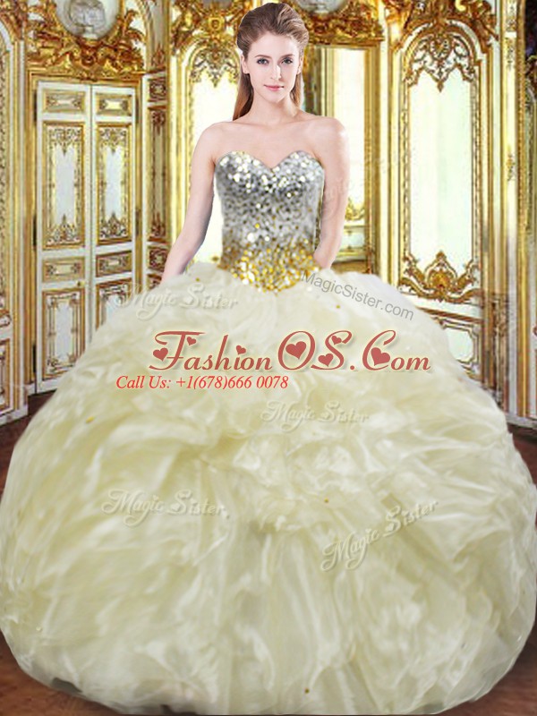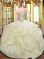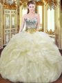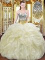 Floor Length Light Yellow Quinceanera Dress Organza Sleeveless Beading and Ruffles
