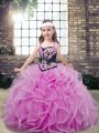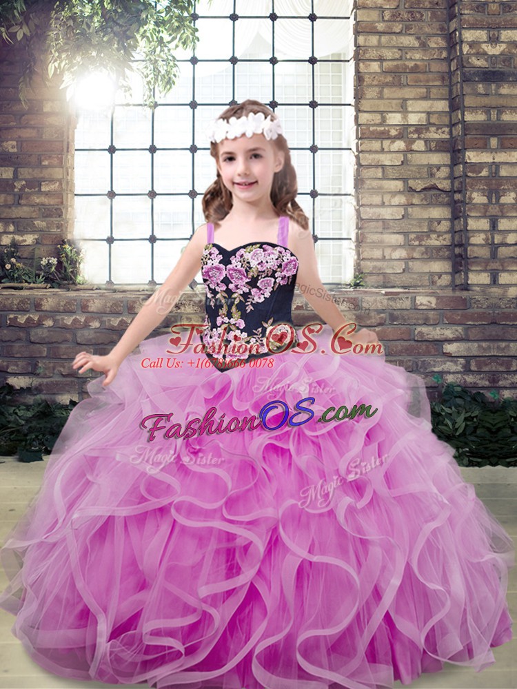 Floor Length Lilac Girls Pageant Dresses Straps Sleeveless Lace Up