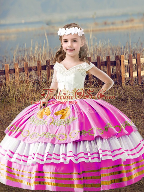 Home >  Special Occasion Dresses >  Beautiful Kids Pageant Dresses > Floor Length Lilac Pageant Dress Satin Sleeveless Embroidery