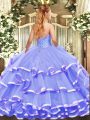 Floor Length Lilac Quinceanera Dress Strapless Sleeveless Lace Up