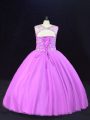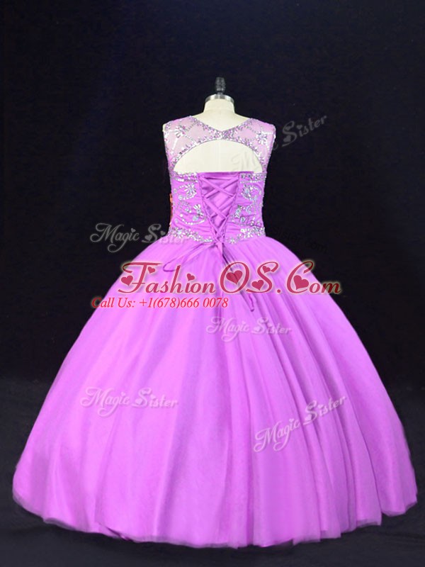 Floor Length Lilac Quinceanera Dresses Scoop Sleeveless Lace Up