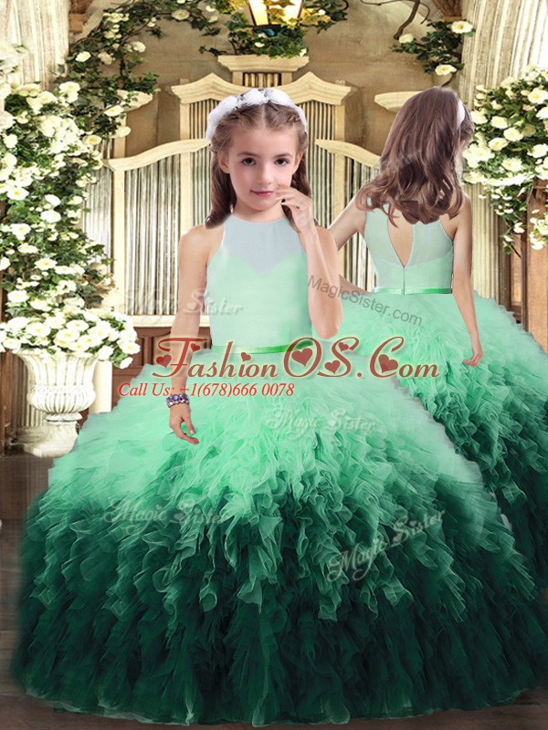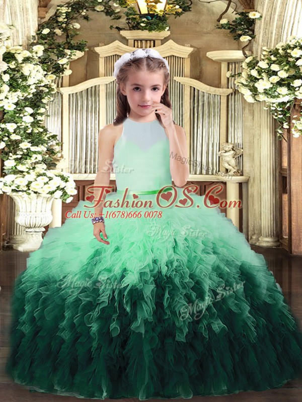 Floor Length Multi-color Child Pageant Dress High-neck Sleeveless Backless