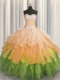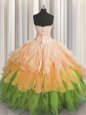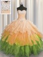 Floor Length Multi-color Sweet 16 Dress Organza Sleeveless Beading and Ruffles and Ruffled Layers and Sequins