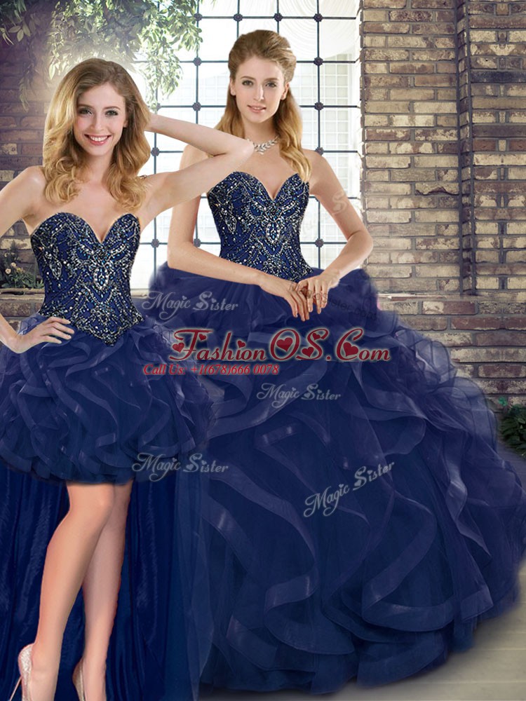 Home >  Quinceanera Dresses >  Detachable Quinceanera Skirts > Floor Length Navy Blue 15 Quinceanera Dress Sweetheart Sleeveless Lace Up