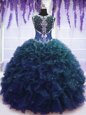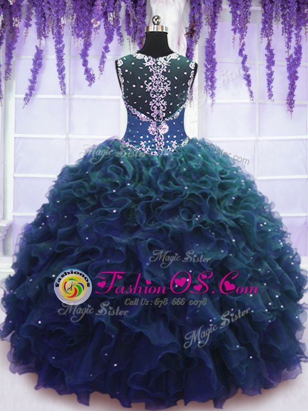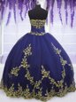 Floor Length Navy Blue Quinceanera Dress Straps Sleeveless Zipper