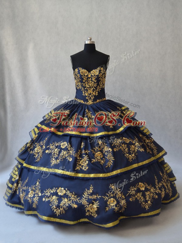Home >  Quinceanera Dresses >  Fast Delivery Quinceanera Dresses > Floor Length Navy Blue Sweet 16 Quinceanera Dress Organza Sleeveless Embroidery and Ruffled Layers