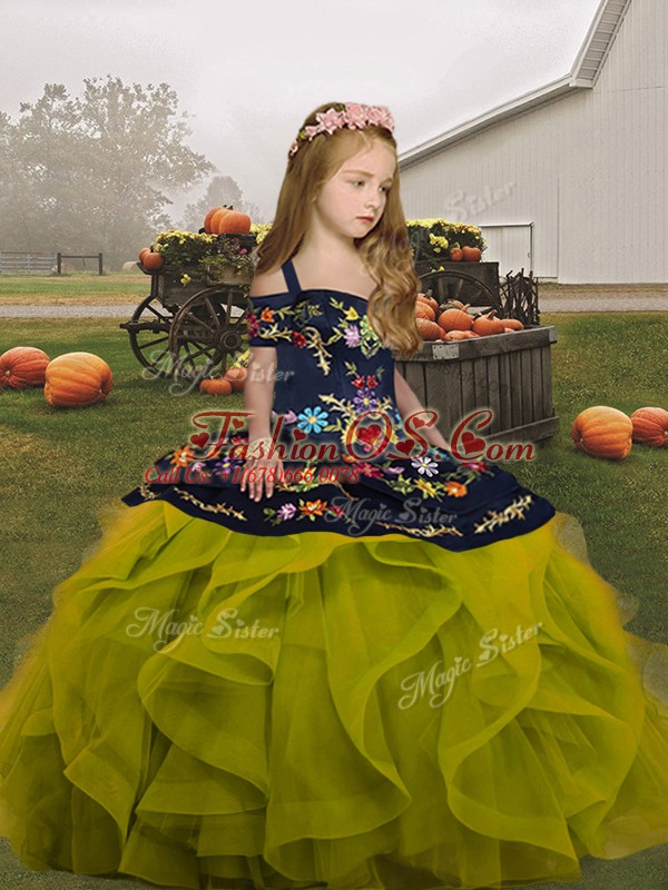 Home >  Special Occasion Dresses >  2018 Little Girl Pageant Dresses > Floor Length Olive Green Pageant Gowns For Girls Organza Sleeveless Embroidery and Ruffles