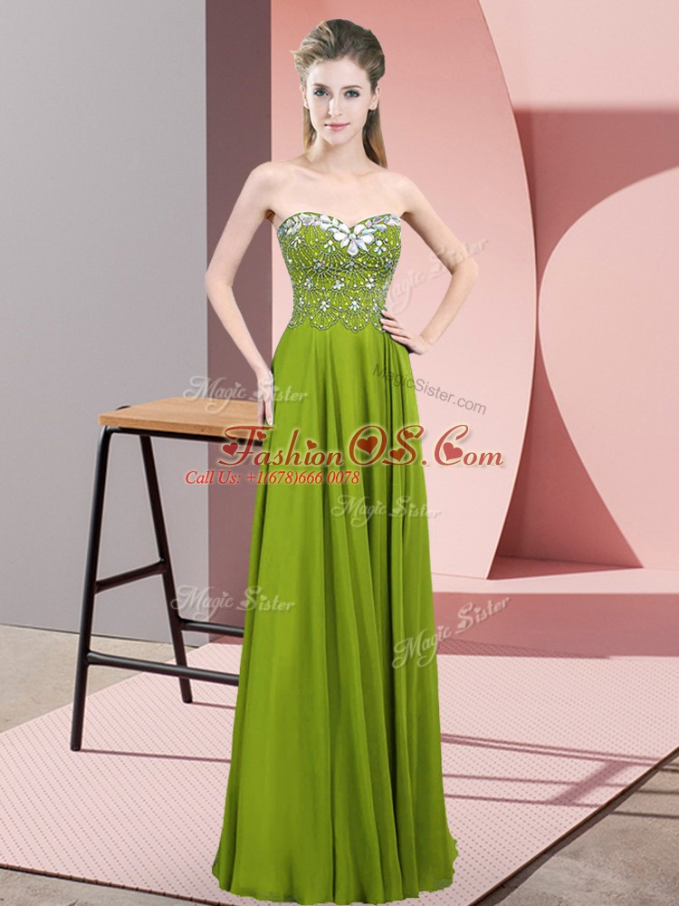 Floor Length Olive Green Prom Party Dress Sweetheart Sleeveless Zipper