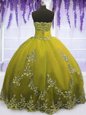 Floor Length Olive Green Quinceanera Gown Tulle Sleeveless Appliques