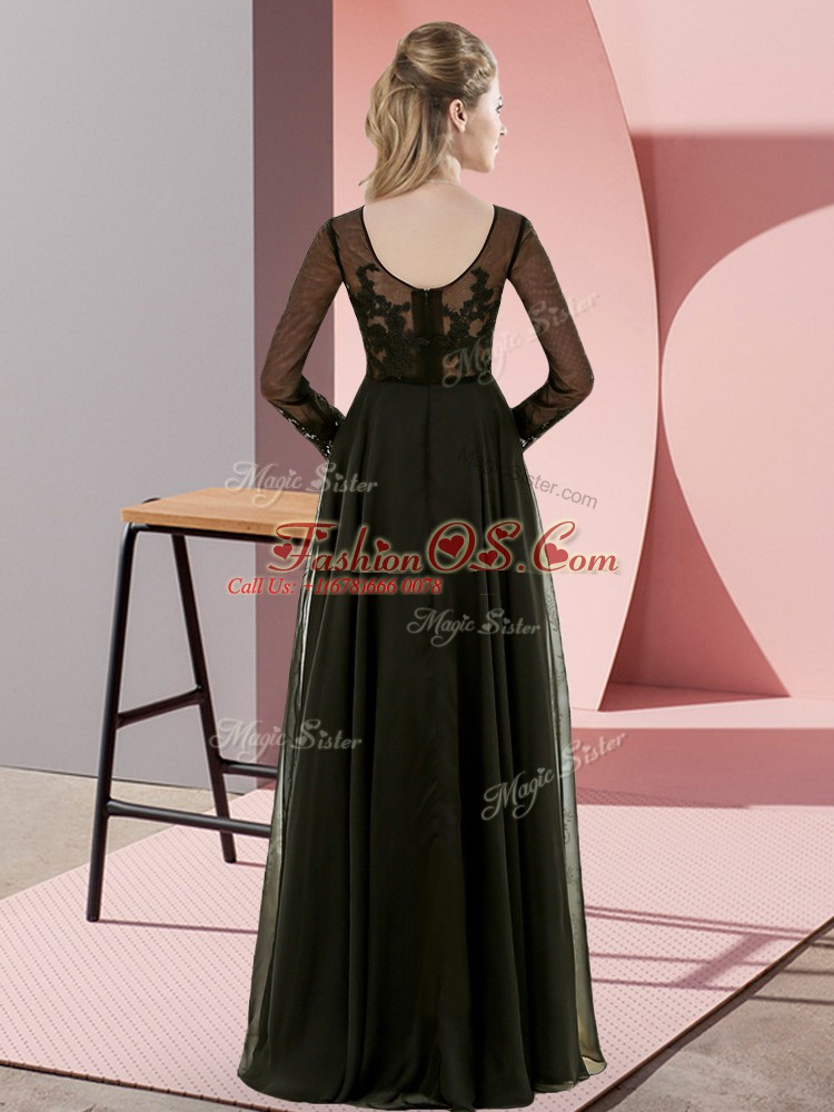Floor Length Olive Green Vestidos de Damas Scoop Long Sleeves Zipper