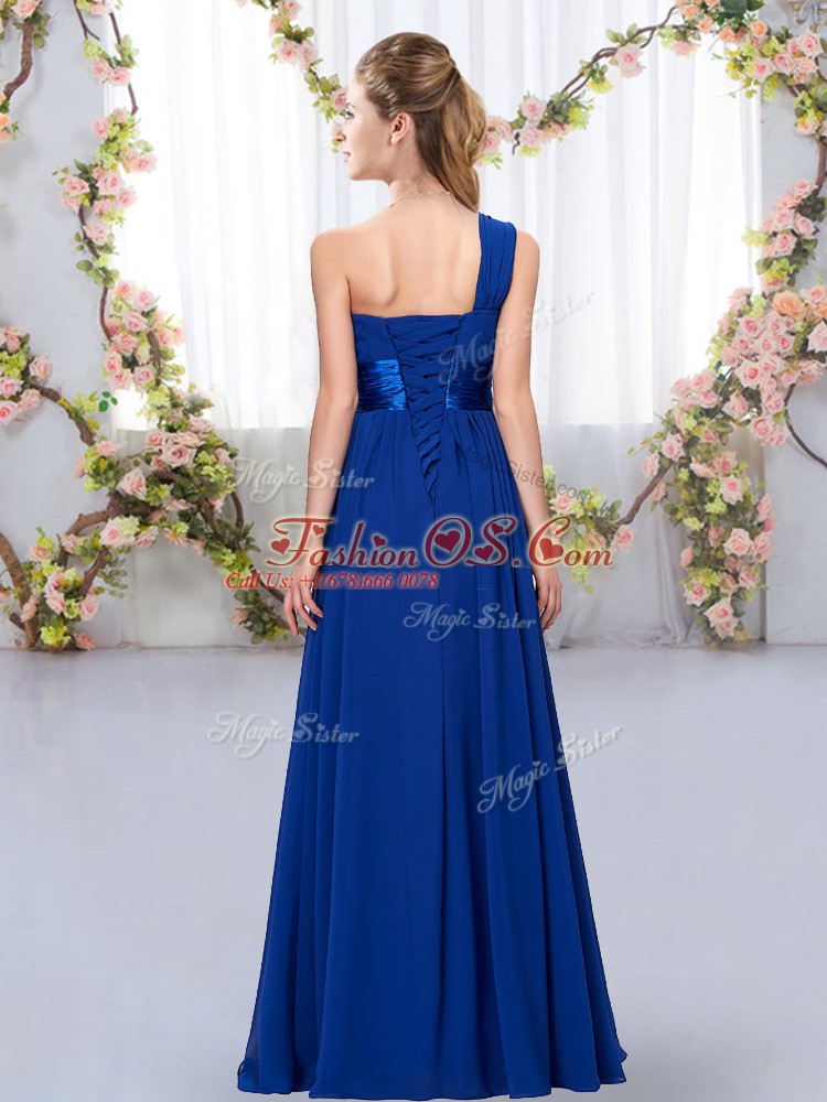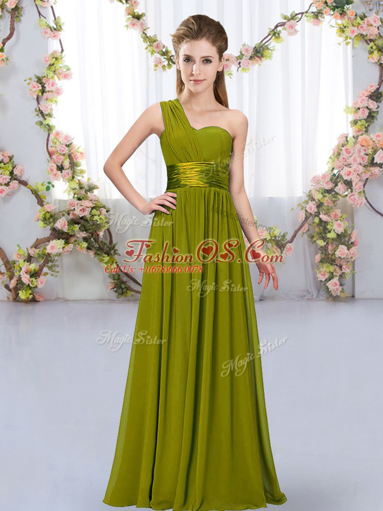Floor Length Olive Green Wedding Party Dress One Shoulder Sleeveless Lace Up