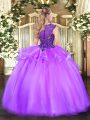 Floor Length Peach 15th Birthday Dress Organza Sleeveless Beading