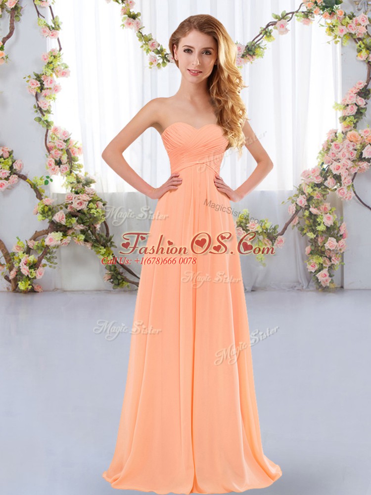 Floor Length Peach Bridesmaid Dresses Chiffon Sleeveless Ruching