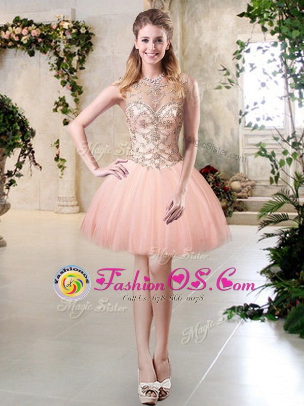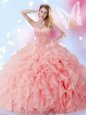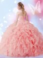Floor Length Peach Vestidos de Quinceanera Scoop Sleeveless Lace Up