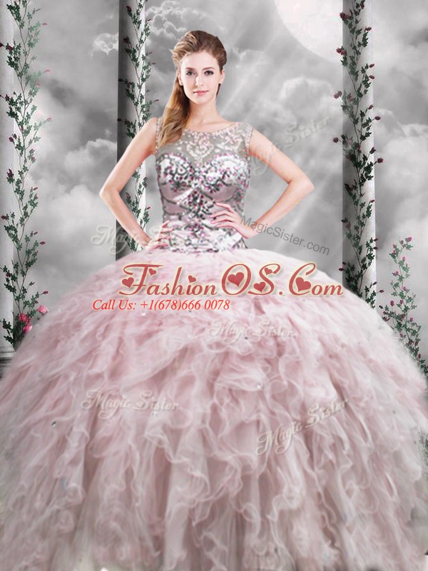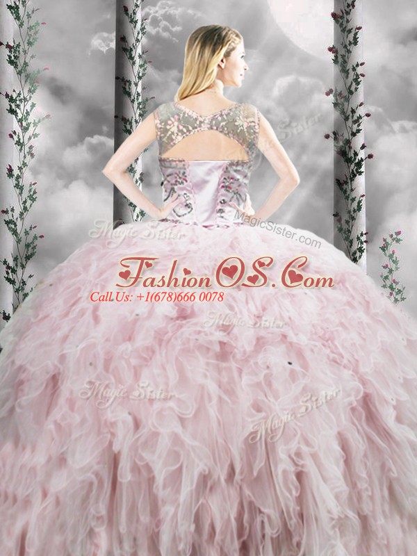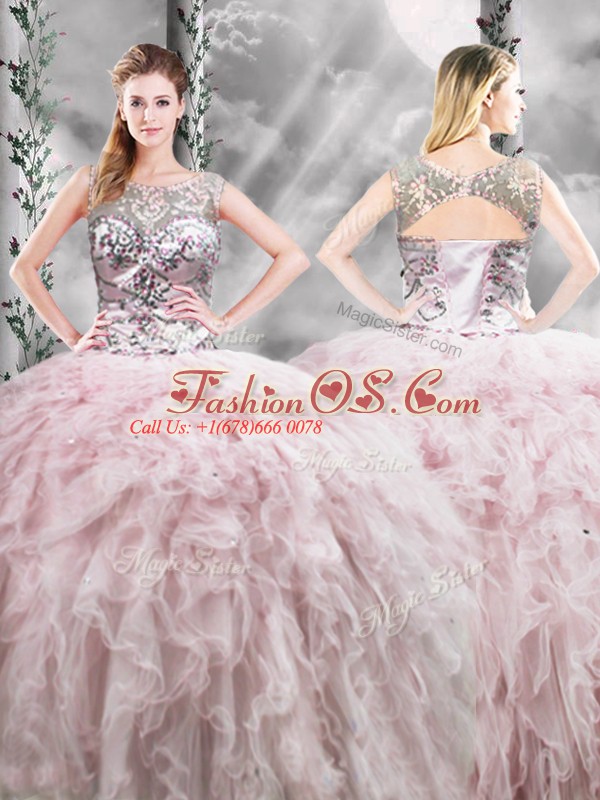 Floor Length Pink Quinceanera Dress Scoop Sleeveless Zipper