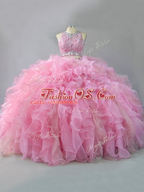 Floor Length Pink Sweet 16 Quinceanera Dress Scoop Sleeveless Lace Up