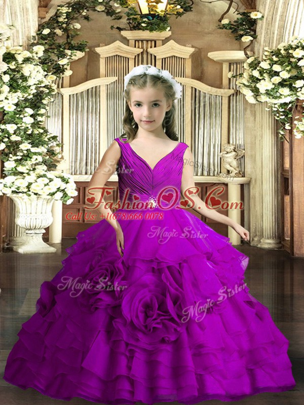 Home >  Special Occasion Dresses >  Lovely Little Girl Pageant Dresses > Floor Length Purple Pageant Gowns For Girls V-neck Sleeveless Backless